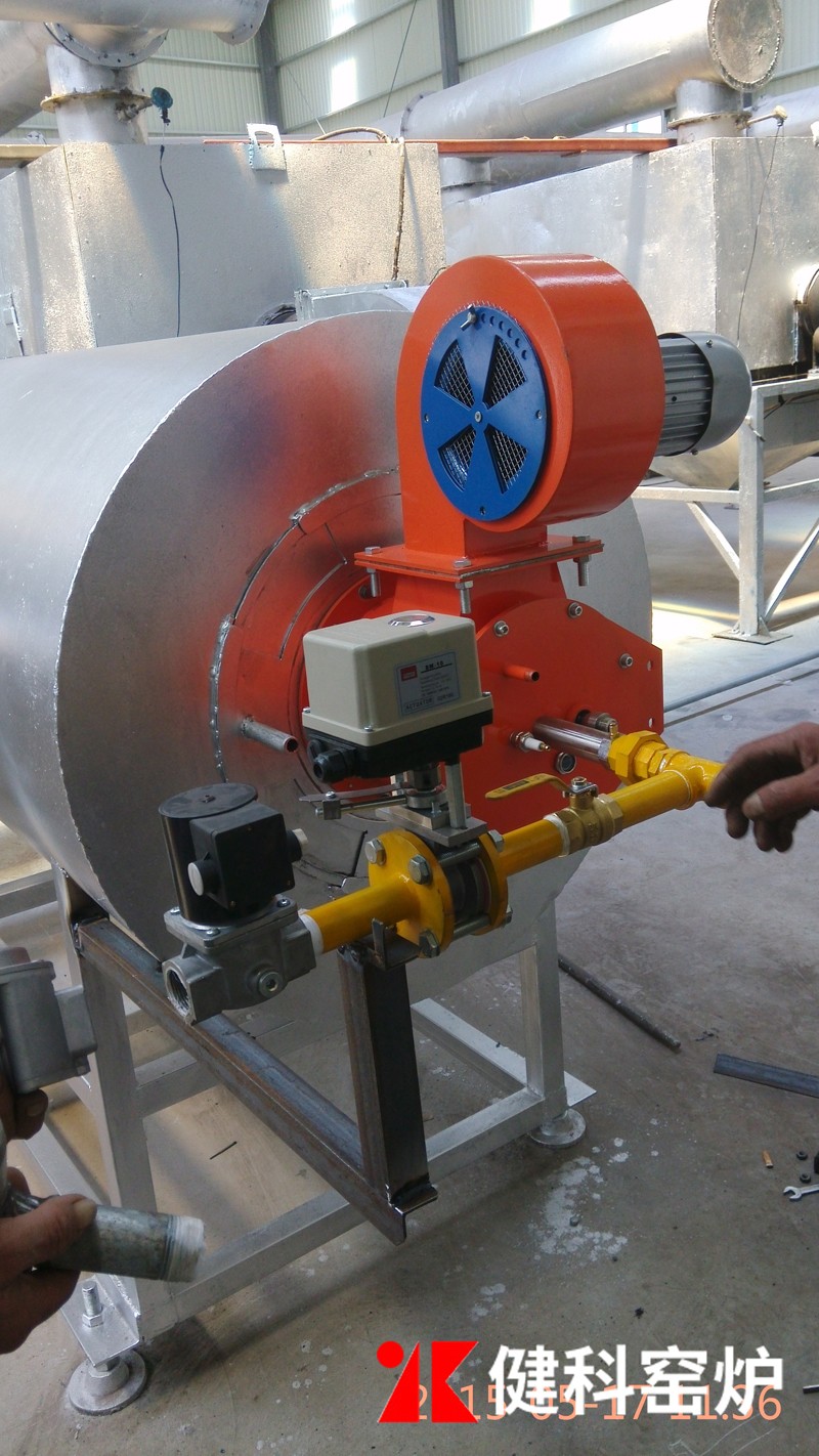 熱風(fēng)爐主要由燃燒機、燃燒室組成。相對于燃煤、生物質(zhì)熱風(fēng)爐,該熱風(fēng)爐燃燒所產(chǎn)生的煙氣干凈,潔凈度高,燃料燃盡率高,控制精度高。